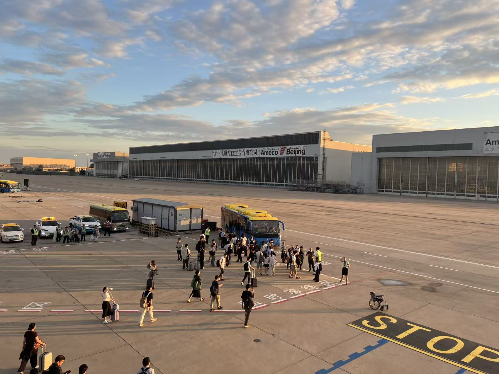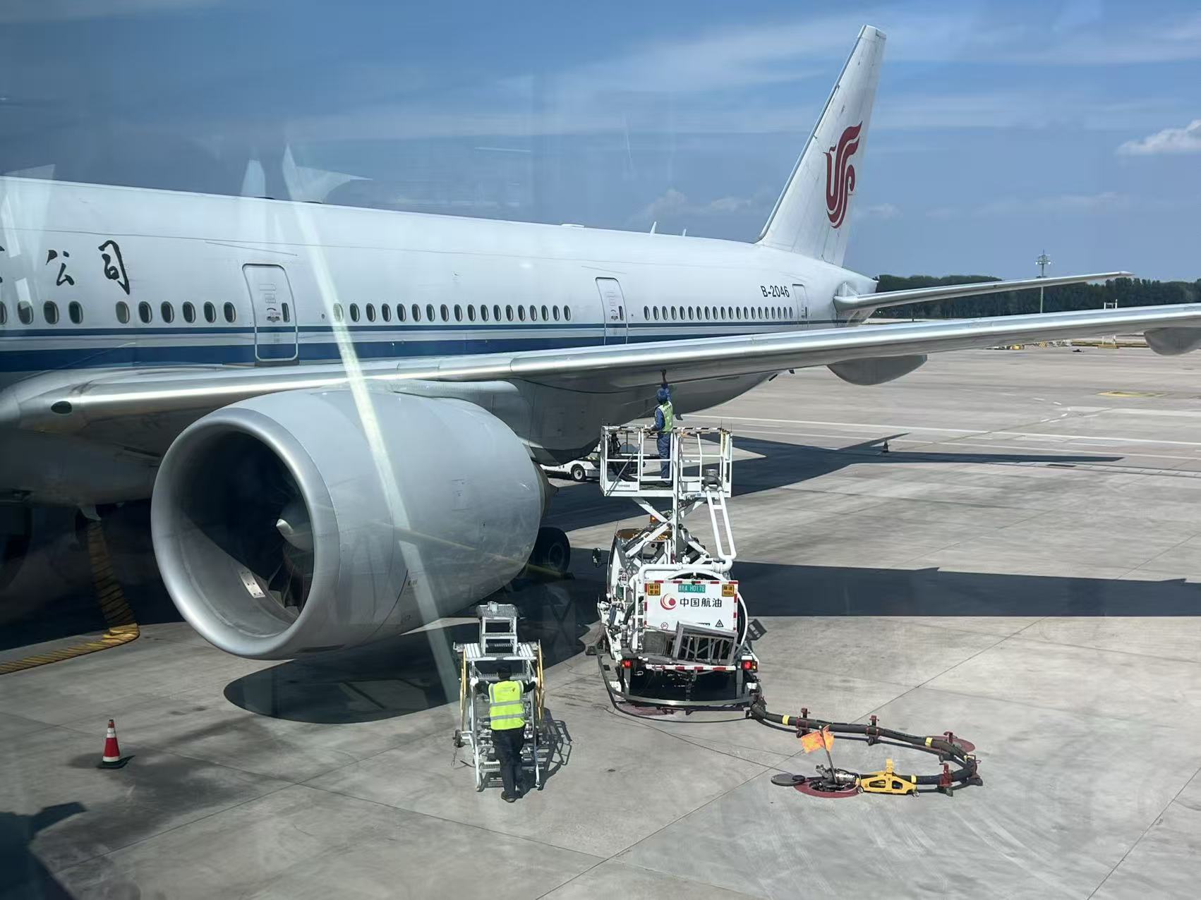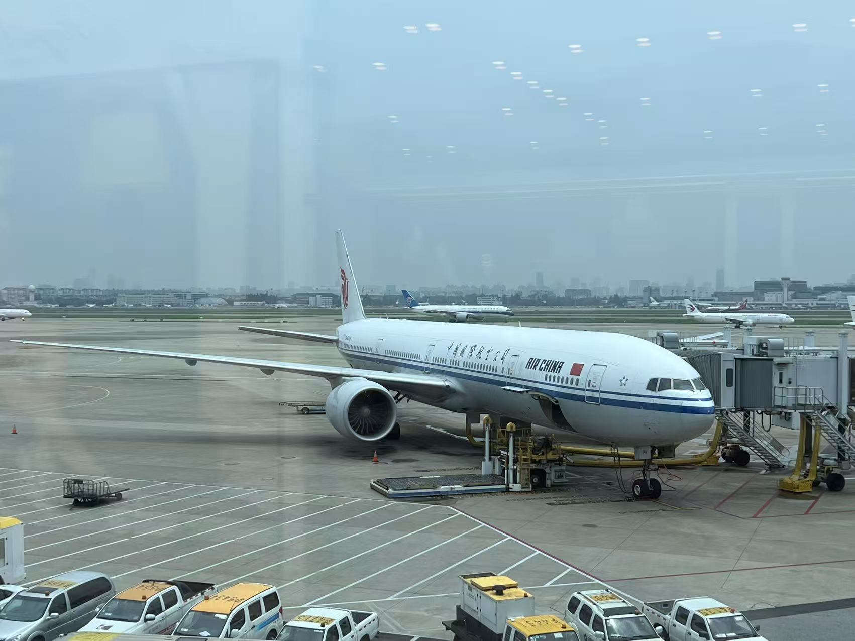 背后一架国航起飞。