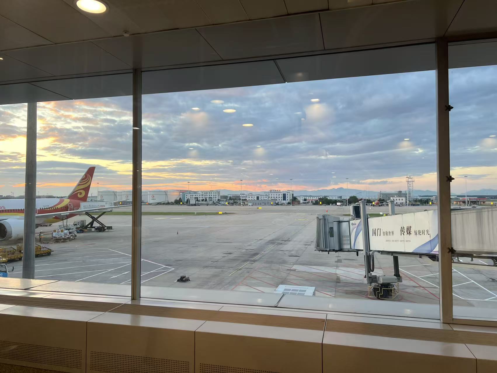 首都机场T2航站楼,镜头视角很像美国旧金山机场。