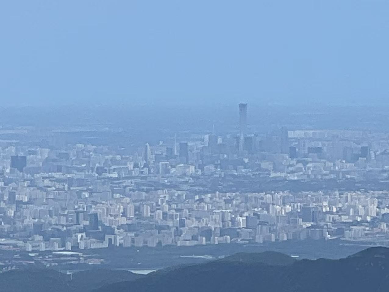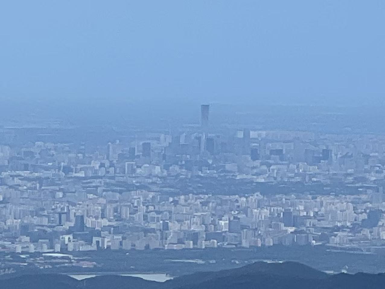 开阔地看近处的海淀、中间主城区、远处的丰台门头沟、房山。朝阳CBD。
