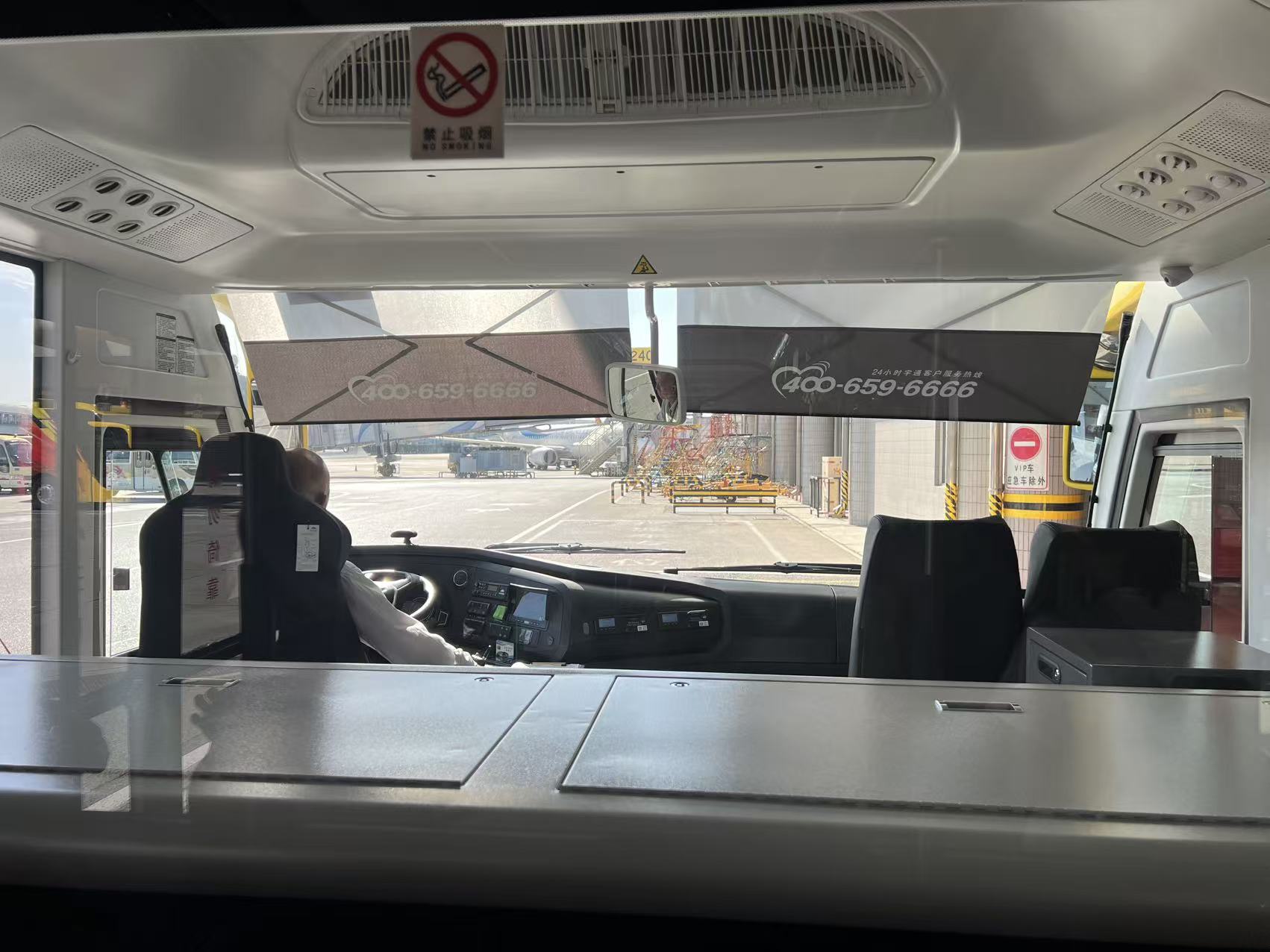 摆渡车都国产了,之前是COBUS,现在是宇通。不知道实际使用好不好,包括动力、维修、故障率等。